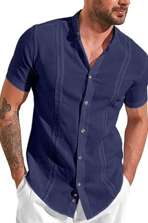 Premium Fabric: This embroidered guayabera shirt for men is made of soft and lightweight fabric, comfortable and breathable, that stays cool and relax during summer wear and makes you comfort and handsome.